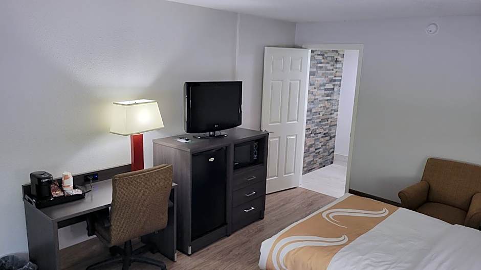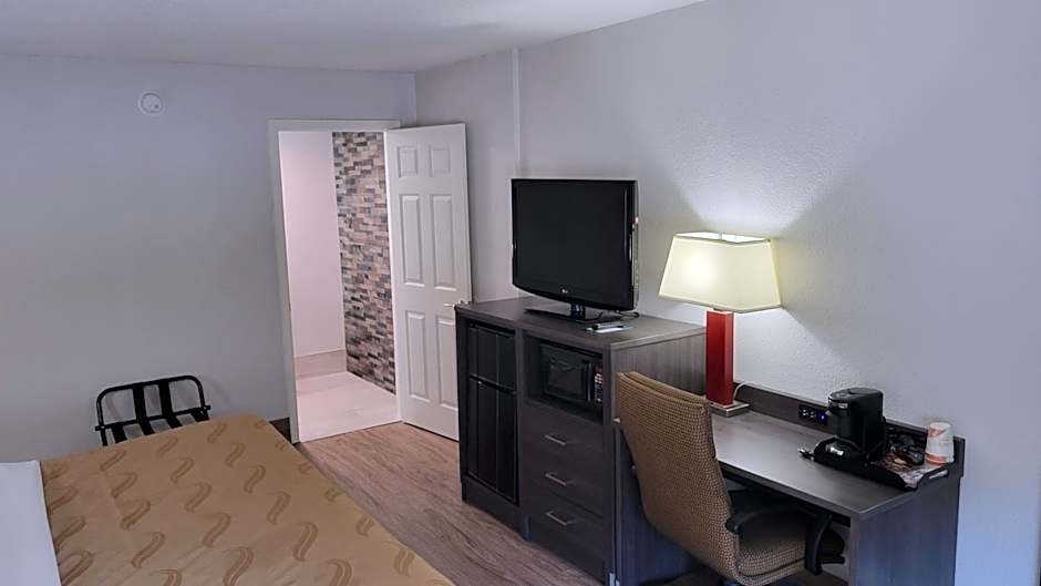 This room features a microwave, cable TV, and small refrigerator.